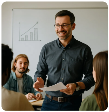 Nos formateurs sont avant tout des professionnels expérimentés dans leur domaine. Ils possèdent une double compétence : expertise métier et maîtrise pédagogique. Leurs missions va au-delà de la transmission de savoirs : ils accompagnent, motivent et valorisent chaque stagiaire, avec un suivi personnalisé tout au long du parcours.